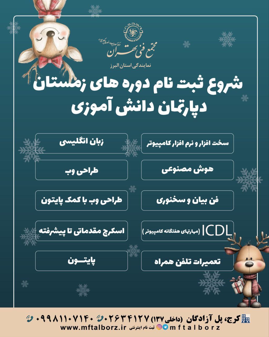 دانش آموزان عزیز آیا میدانيد تمام مهارتهای موردنیاز مدارس و دانشگاهها را میتوانید در مجتمع فنی تهران نمایندگی البرز آموزش ببینید؟